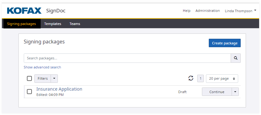 Create a signing package to send documents for recipients to sign. A SignDoc Standard signing package is a container used to send one or more documents for signing or reviewing. A signing package can have multiple multi-page documents and several recipients with different roles.