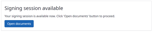 Once the signing session is available, the waiting signer can start it by clicking the Open documents button.