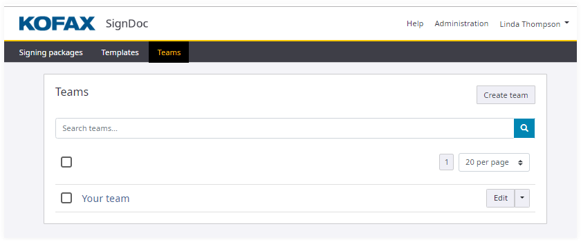 SignDoc Standard supports the ability to organize work in teams, which allows a group of users to be responsible for a certain set of packages.
