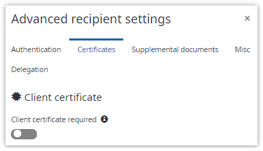 When Client certificate required is not selected, the installed certificate is used. See information about the signing certificate in Signing documents.