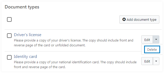 To delete a document type, click