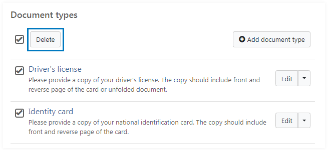 An account administrator can manage document types assigned to an account. A document type is a template which defines a group of supplemental documents.