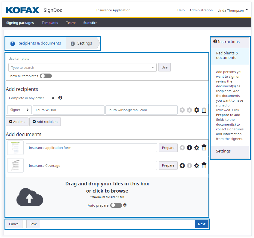 Send documents for signing.