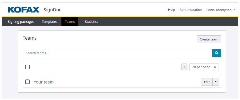 SignDoc Standard supports the ability to organize work in teams, which allows a group of users to be responsible for a certain set of packages.