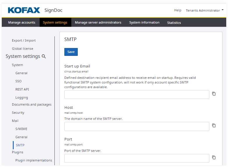 SMTP configuration