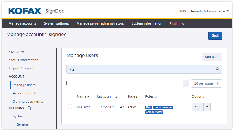 Users of an account will be able to log into a specific account in SignDoc Standard.