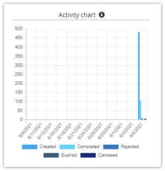 Activity chart displays dynamics of signing activity. It’s the bar chart