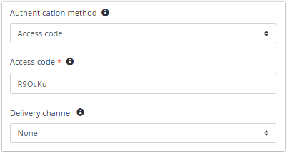 Delivery channel specifies the way the access code is delivered to the recipient.