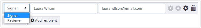 After adding a recipient, select the role for the recipient. A recipient may act as a signer or a reviewer.