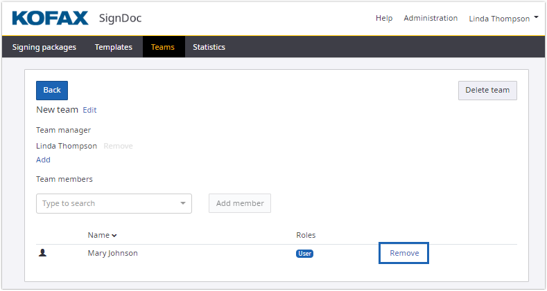 This functionality is only available when accessed by SignDoc Standard user who is assigned to the team manager role for this team, or who is an account administrator.