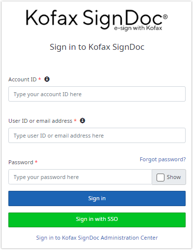 In some instances, the application prompts you to enter your account ID. You receive your account ID after purchasing SignDoc Standard. The account ID is unique to your (or your company’s) account.
