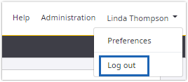 In the application header, click the user name. Then click Log out.