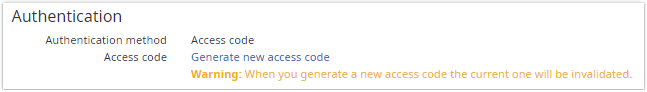 Click the Generate new Access Code link to display the dialog box with the new generated access code.