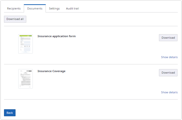 Use the Supplemental documents section to download supplemental documents, which were uploaded by a recipient.