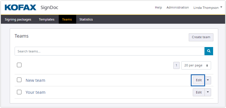 This functionality is only available when accessed by SignDoc Standard user who is assigned to the team manager role for this team, or who is an account administrator.