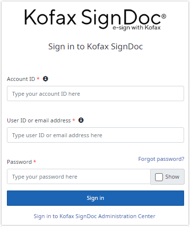 In some instances, the application prompts you to enter your account ID. You receive your account ID after purchasing SignDoc Standard. The account ID is unique to your (or your company’s) account.