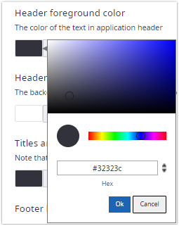 The option Header foreground color changes the color of the text in the application header.