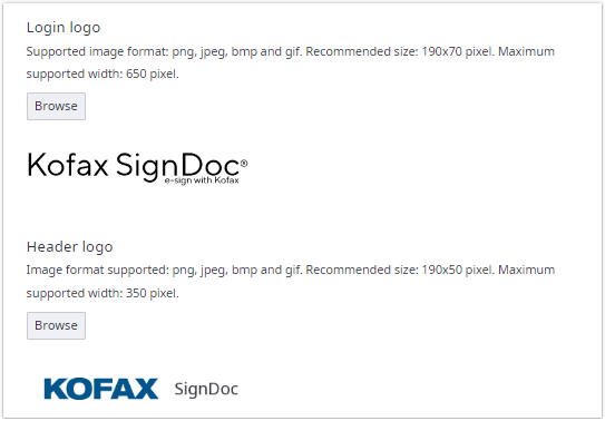With the option Login logo, you can change the logo of the login screen. To do so, click Browse to locate the preferred image.