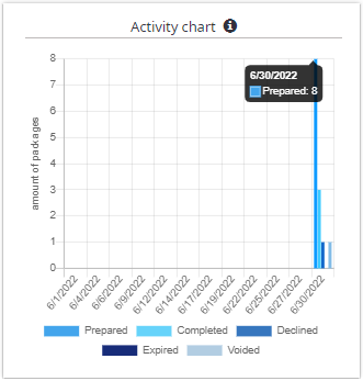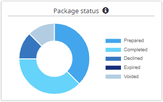 This chart demonstrates the amount of packages according to their last status: prepared, completed, declined, expired, or voided. It expresses a part-to-whole relationship between different package states.
