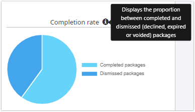 This chart displays the share of packages completed to all the finalized packages. It provides the proportion between positively finalized and dismissed (declined, expired and voided) packages. Packages with status prepared are ignored in this graph.