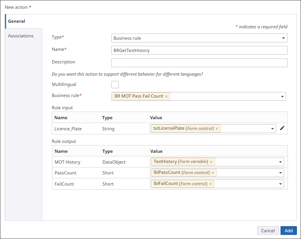- In the Business rule box, select the BR MOT Pass Fail Count variable.