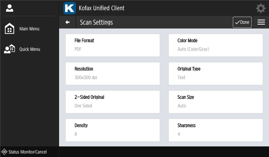 Currently, the Unified Client for Canon supports a subset of the settings and options that are originally available on Canon devices. These are as follows: