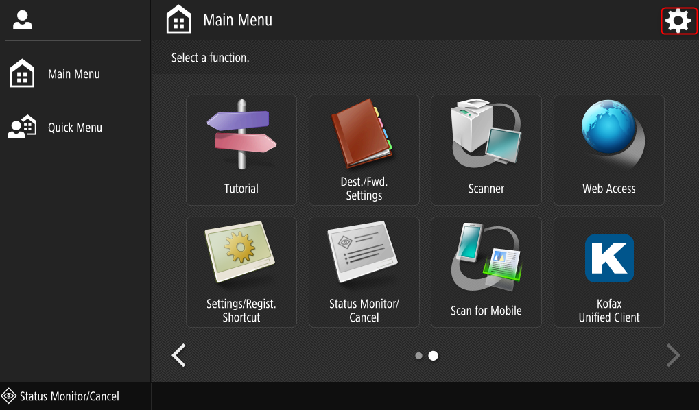 Before you start: By default, the settings icon is grayed out. To enable it, go to Quick Menu > Personal > login as administrator on the login screen > Main Menu.