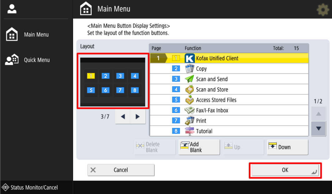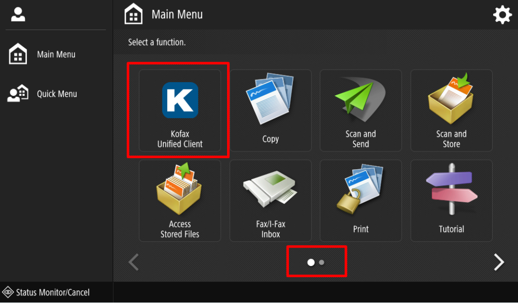 In case you want application logo (Kofax United Client) to be available on the first page of Main Menu, complete as follows: