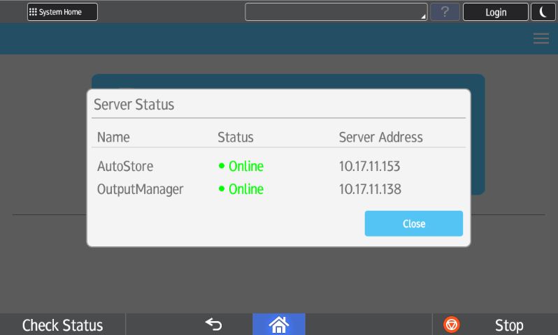 After you close Server Status screen, you can display the Login