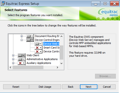 - Close all other applications on the server prior to running the Equitrac Office/Express installation.