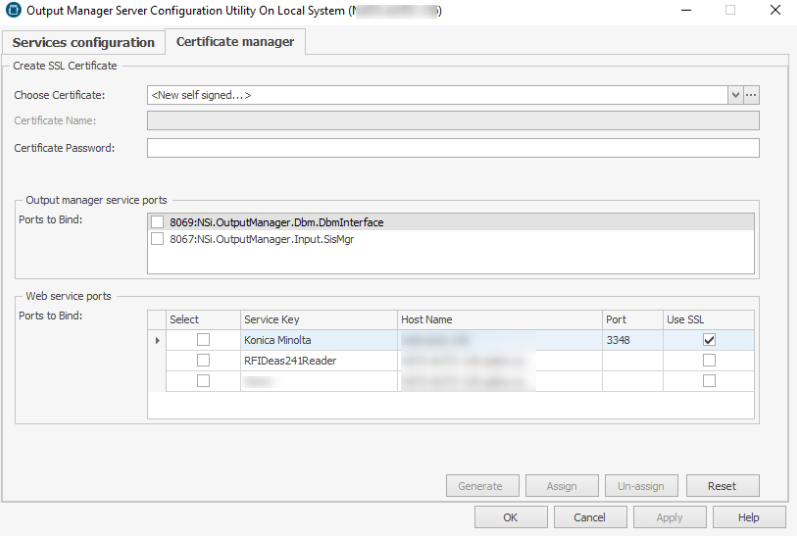 When using SSL, Konica Minolta iOption employs Secure Hash Algorithm (SHA-256) encoding for self signed certificates in AutoStore. When using an Output Manager only configuration, newer Konica Minolta devices will display a SHA-1 warning. This can be avoided by specifying a certificate that is signed with SHA-256 in the Certificate Manager tab of the Output Manager Console.