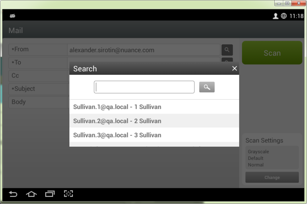 - Make a selection from the results, and touch OK. The information populates the To or Cc field.