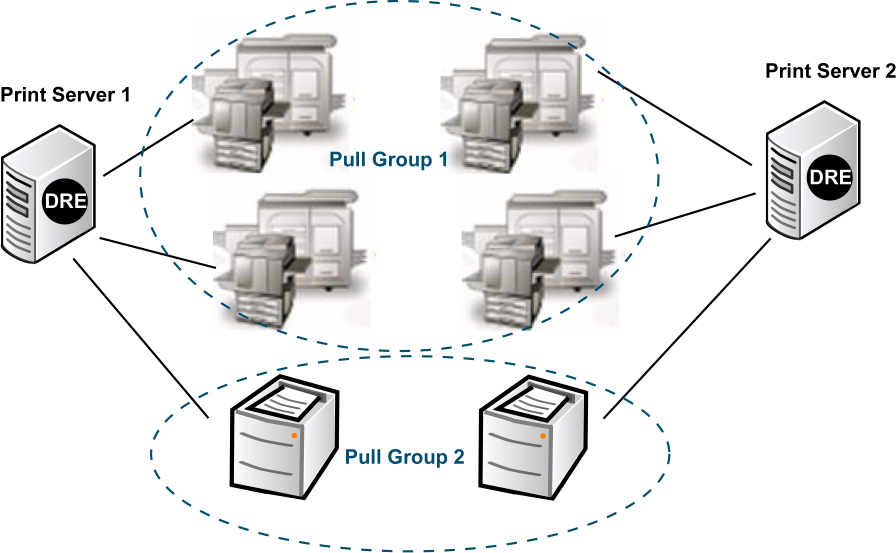 Two pull groups created across two print servers