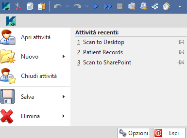 To open or close the Kofax Express menu, click the Kofax Express button at the top left corner of the Kofax Express window.