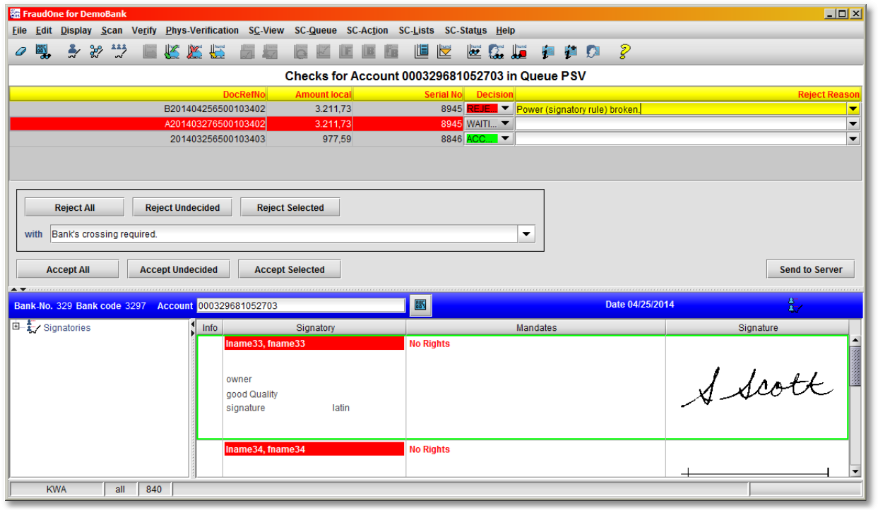 Alternatively you can decide every single document by selecting a convenient action and reject reason in the last 2 columns of every row.