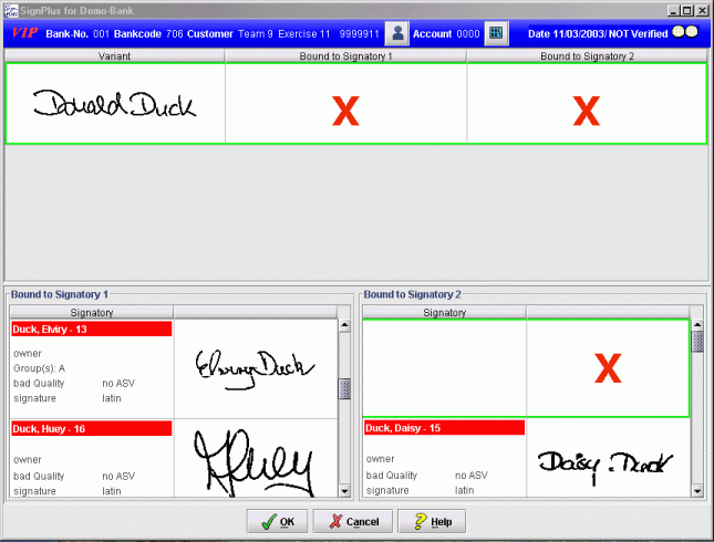The variants are listed in the upper part of this dialog. The signatories can be seen in the lower part. All signatories are displayed in both the left and the right columns.