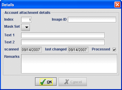 The details section allows the user to view details concerning the current image. By doing a double click in the details section an edit dialog is opened to change the details data of the current image.