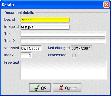 The details section allows the user to view details concerning the current document. By doing a double click in the details section an edit dialog is opened to change the details data of the current document.
