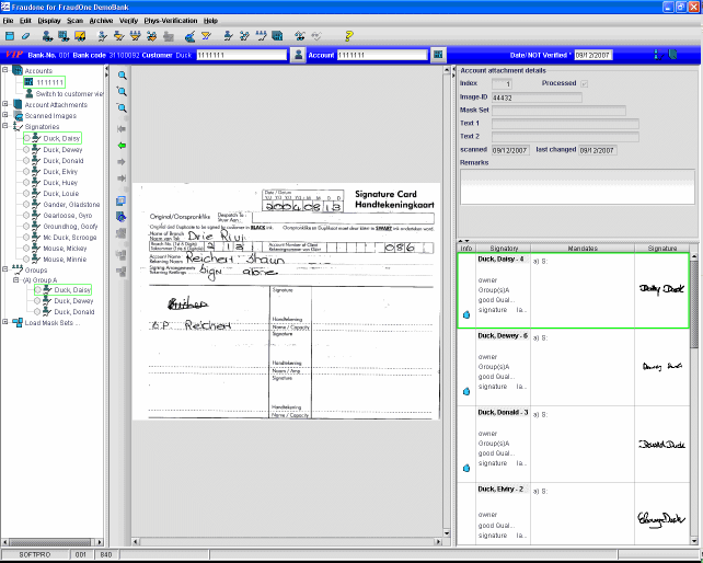 The SignInfo view is provided for viewing and processing images whereas SignBase is designed for signatures. In many cases SignInfo will be used to create signatories/signature from an account opening card loaded manually or provided by the Archive Interface Server. To serve different needs the outlook of the SignInfo view can be configured depending on project command.