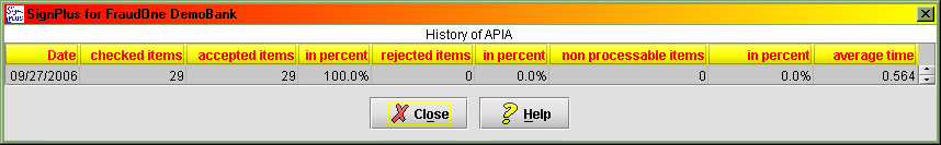 In this menu, you obtain information on automatic forgery detection statistics. These statistics are kept for several days. These statistics consider all present BNOs. By clicking on one of the lines the Statistics APIA for all BNOs of the selected day will be displayed.