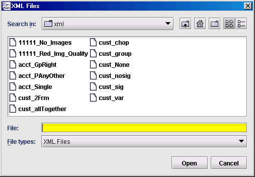 This dialog loads a customer or account from a XML file specified by a file chooser dialog. The customer or account information is displayed and saved to the database. If the customer does not already exist, it is created. If it already exists, it is updated with the data given by the XML file.
