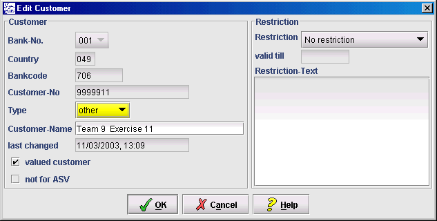 When restrictions are written, the text can be selected from a list. If you select See restriction text from the pull-down menu, you can enter free text of up to 200 characters.