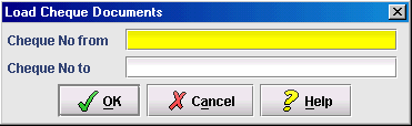 When the desired data file has been selected it is also possible to select a specific cheque number range for the processing.