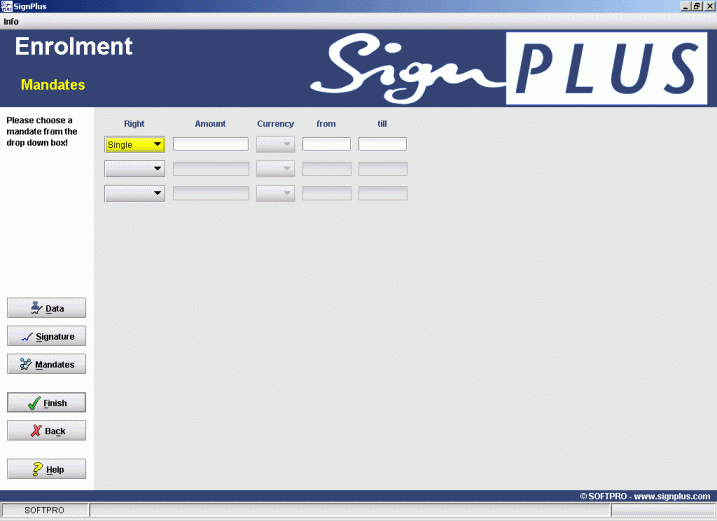 By pressing on Mandates button you can assign simple rules for the Signatory.