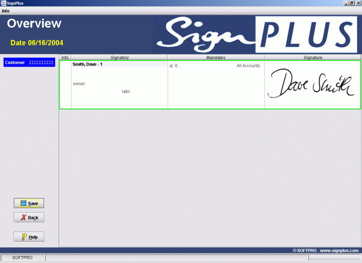 Press Save button if all data is to be saved to the database and to complete the signatory enrolment process.