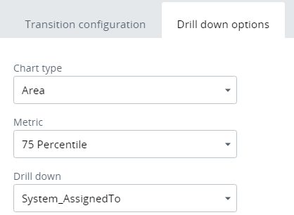 When you click the transition or hover over it (depending on the designer's selection), the chart appears over showing the metric for the selected dimension.