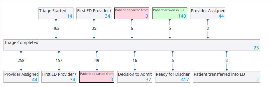 the steps in a process as rectangles with the number of instances between steps