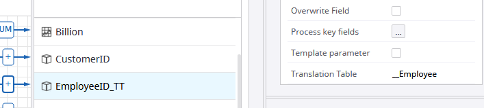 Fields from the translation table are added as separate columns and are linked to the dimension that the translation table is assigned to.