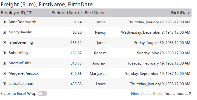 If you have mapped several fields in the translation table, you can use them in a metric grid. Fields from the translation table are added as separate columns that are bound to the dimension linked to the translation table.