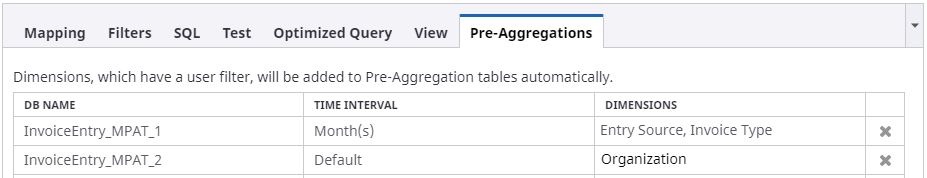 All dimensions manually added to the pre-aggregated tables.